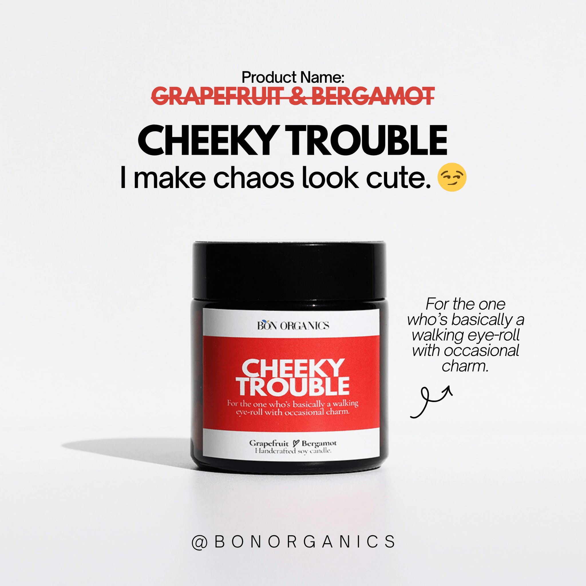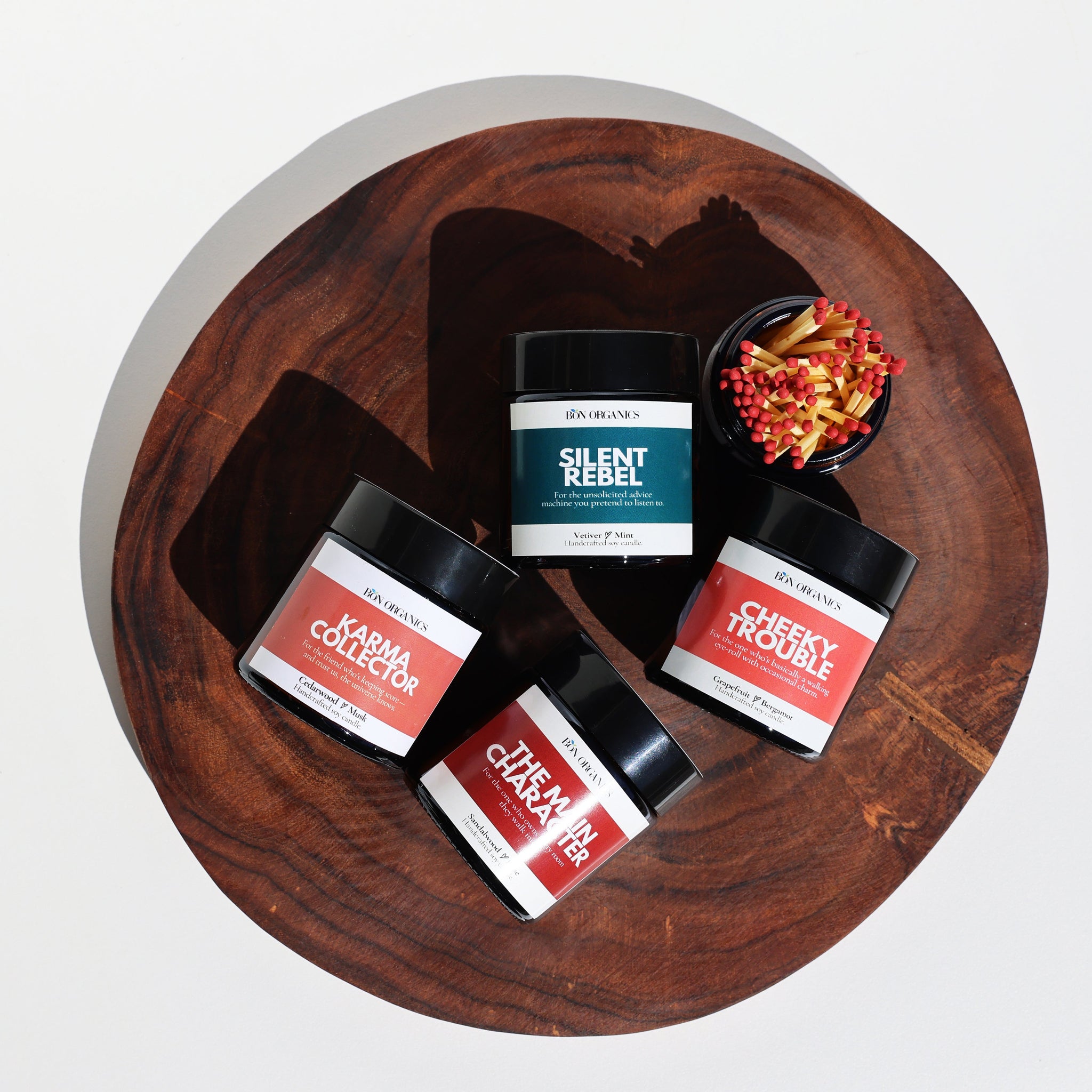 Bon Organics Candles — Because Every Personality Deserves to Shine From our Wicked-ed collection comes something truly personal. Each handcrafted soy candle is inspired by real people — their quirks, moods, and stories. These aren’t just scents; they’re little reflections of life’s calm, cheeky, and quietly rebellious moments, wrapped in warm wax and pure essential oils. Gift one to someone special (or yourself) and explore all eight personalities — because every kind of glow deserves its moment to shine.